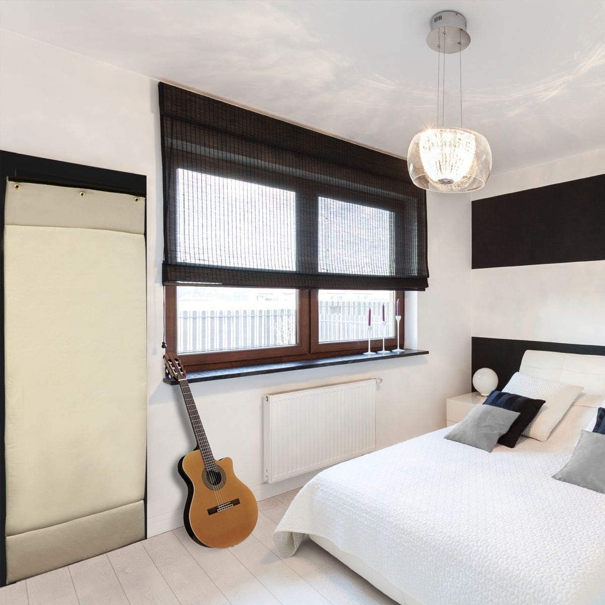 [Easy to Install & Remove] — Portable design with grommets and included hanging hardware. Use as an acoustic treatment over walls, doors, windows, or as partitions. Measures 82″ x 34.5″ and weighs approximately 18 lbs.