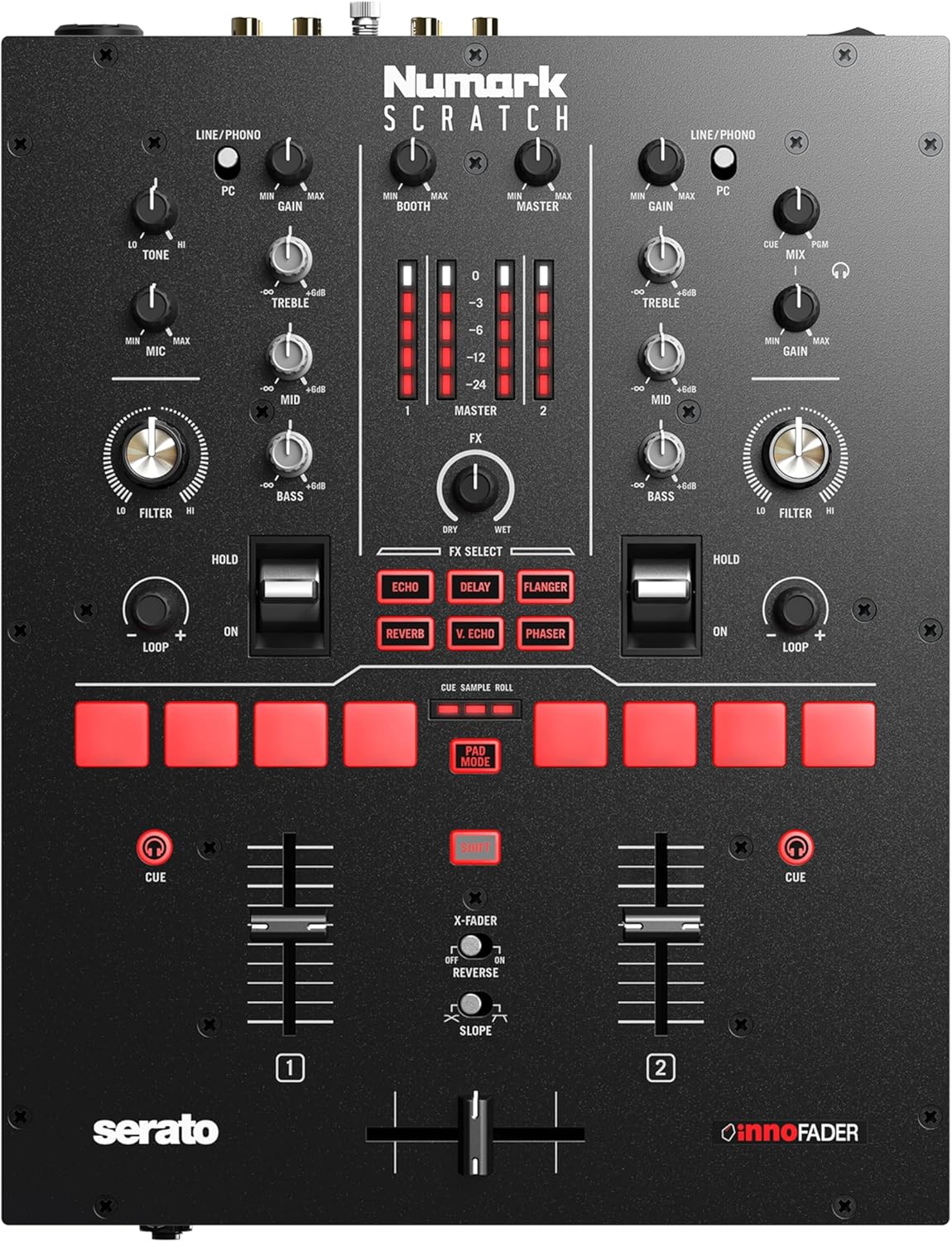 Numark Scratch | Two-Channel DJ Scratch Mixer for Serato DJ Pro (included) With Innofader Crossfader, DVS license, 6 Direct Access Effect Selectors, Performance Pads and 24-Bit Sound Quality